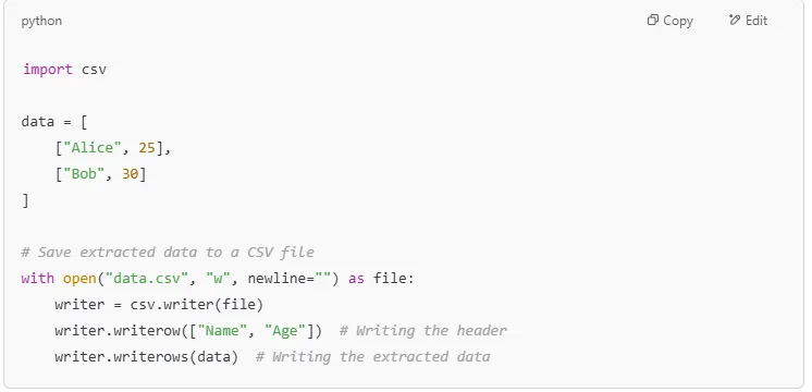 Tip: You can store extracted data in a CSV file for later analysis.