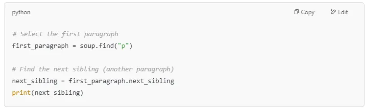 | .next_sibling | Finds the next sibling element |