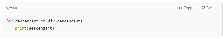 | .descendants | Finds all nested elements within a tag |