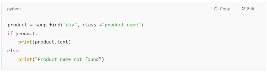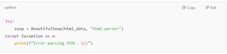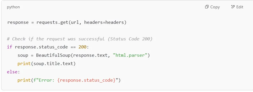 Websites may return errors like 404 (Not Found) or 403 (Forbidden). To avoid crashing your script, you should check the response status before parsing the HTML.