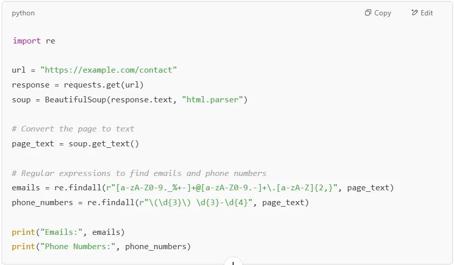 Extracting emails and phone numbers from a website is useful for lead generation and business intelligence.