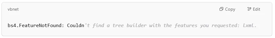 Make sure you install lxml or use Python’s built-in html.parser.