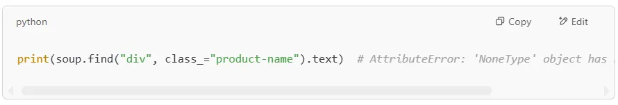 You may get NoneType errors when trying to access an HTML tag that doesn’t exist in the HTML document: