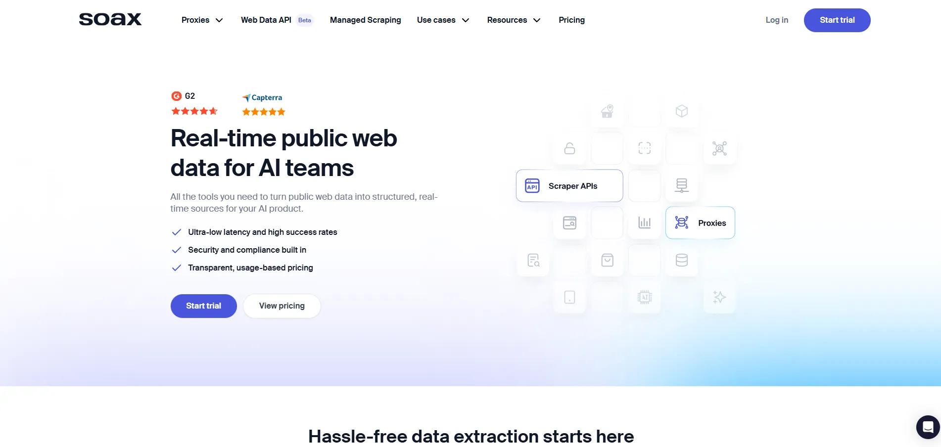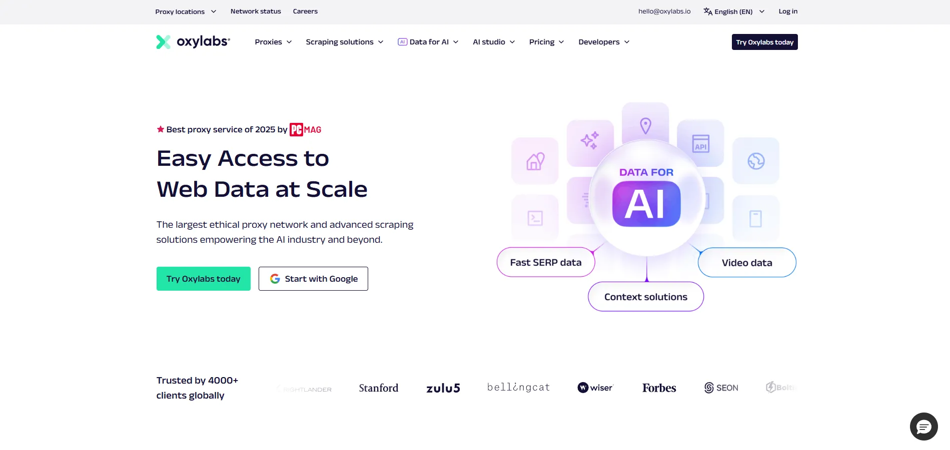 Oxylabs has expanded into AI and LLM support. Their infrastructure collects multimodal web data at scale, giving AI models training data and real-time web access capabilities.