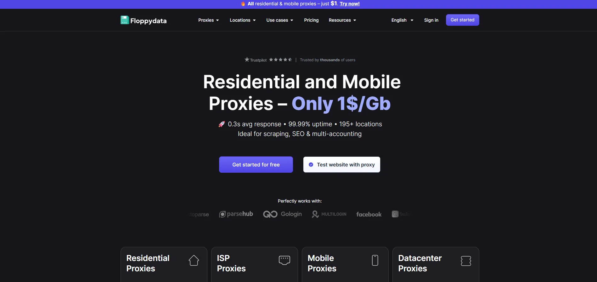 FloppyData gives you a great alternative to proxyrack proxies if speed and reliability matter most. The service excels at providing real residential and mobile IPs. It works great for web scraping, SEO research, ad verification, and managing multiple accounts. Their simple pricing and strong technical performance make them a top choice in the proxy market.