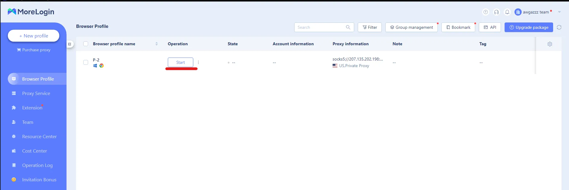 9. You will now see the proxy profile created. Press start, and the browser window will open. At this point, you can also adjust language settings to further customize your browsing experience.