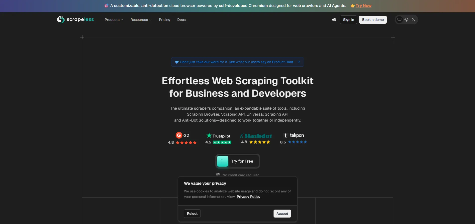 Scrapeless ranks second on my list of Rayobyte alternatives. This detailed web scraping toolkit combines smart proxy management with powerful data extraction tools.